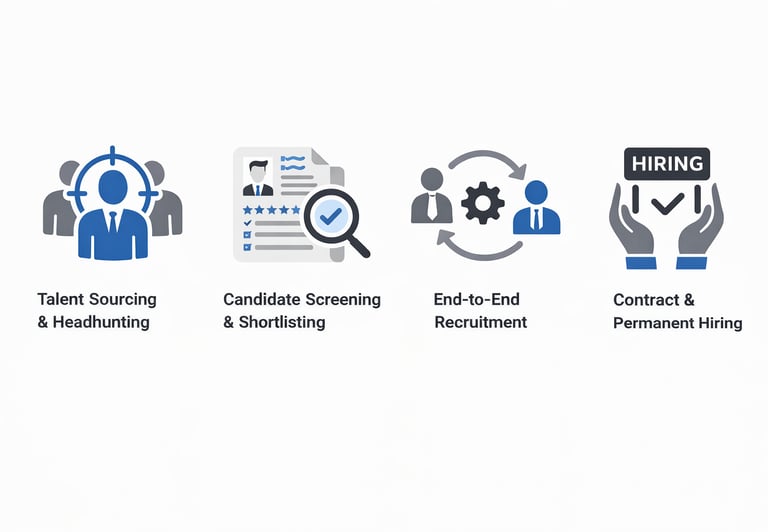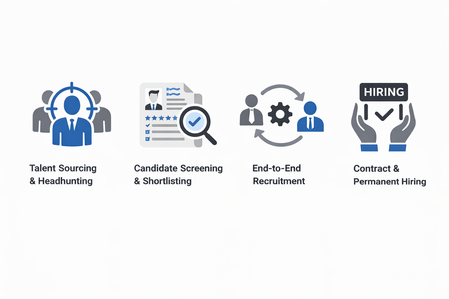 From strategy and talent sourcing to candidate screening and placement, our end-to-end recruitment solutions enable businesses to build high-performing teams and achieve sustainable growth.